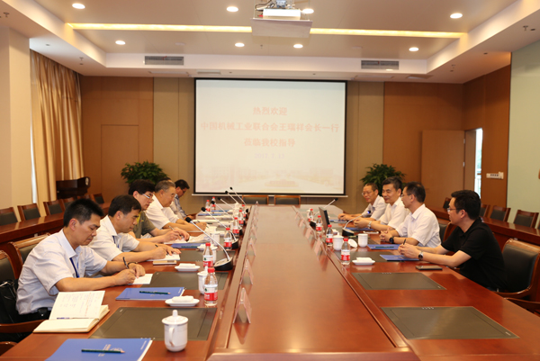7月13日下午,中国机械工业联合会会长王瑞祥、工信部教育与考试中心马蔷主任、中华全国总工会汪东处长、机械工业教育发展中心副主任房志凯等一行8人来校调研工作。