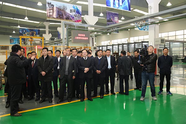 代表团一行先后来到我校智能制造工程中心和汽车与交通学院实训大厅,参观了数字化管控车间、五轴联动加工设备、我校自主研发的工业机器人技术应用平台和汽车检测与维修实训平台等,了解学校硬件环境和近年来贴近区域经济发展和产业转型升级培养人才所作出的努力。参观过程中,于丛乐书记和乌成云市长详细询问了我校专业建设、人才培养等方面的情况,并饶有兴趣地观看了实训学生装调、测试机器人技术应用平台操作。