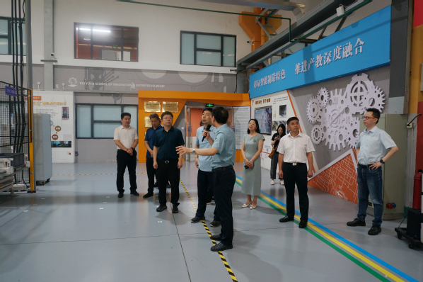 陕西省发改委调研组走访参观了智能制造工程中心、“智造”双创实践教育中心、智能制造应用技术研发基地等场所。杨雪琴代表学校对陕西省发改委调研组的到来表示热烈欢迎,并介绍了学校历史沿革、办学概况、专业(群)建设、产学研用融合、校企合作等方面的内容。