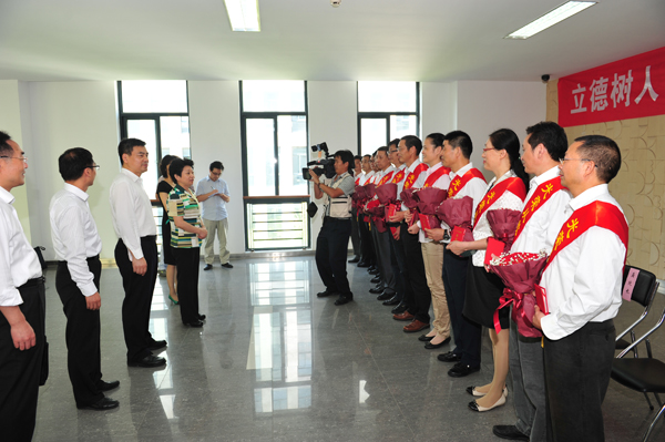 9月9日下午,在第29个教师节即将来临之际,省委常委、市委书记黄莉新,市委常委、组织部部长朱劲松来到我校太湖校区,向我校14位三十年以上教龄的教师表示祝贺,并颁发了荣誉证书、赠送了鲜花。市委教育工委书记、市教育局局长陆卫东,市委办公室副主任陈寿彬,校领导朱爱胜、龚方红、谈向群、冯渊、顾京、周桂瑾参加了慰问活动。