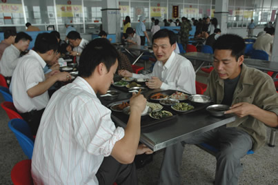 2006年5月22日,无锡市张大良副市长来我院调研。图为张大良(右2)与学生交谈。