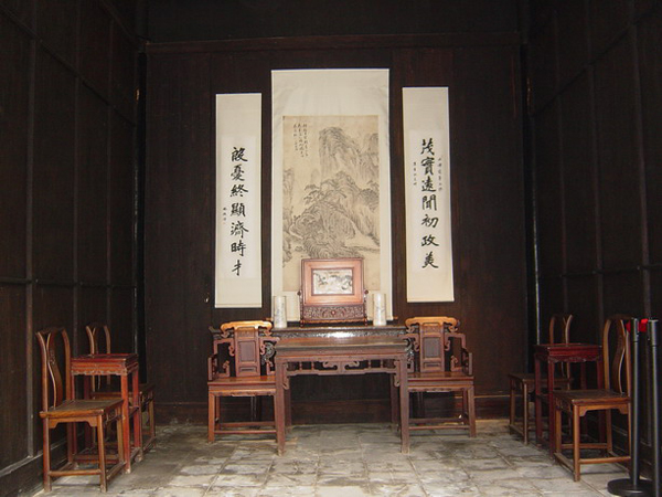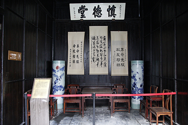 走出陈列室向后就是“既翕堂”,堂匾上的字由清末南通籍状元张謇题写。堂上挂着一副颜色已经发黄了的对联“第一件好事只是读书;几百年人家莫非积善”。