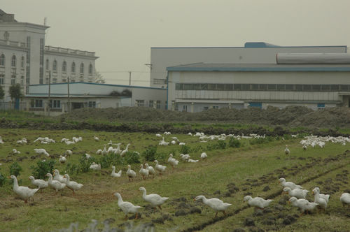 蒋巷村集体饲养的鸡、鸭、鹅,都在田地、果园里放养