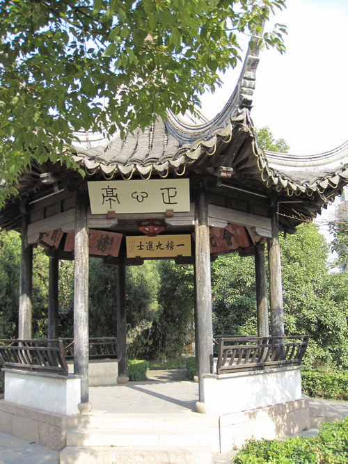 花园中的“正心亭”,八角飞檐,内悬明清科举制度“状元”、“榜眼”、“探花”等匾额。