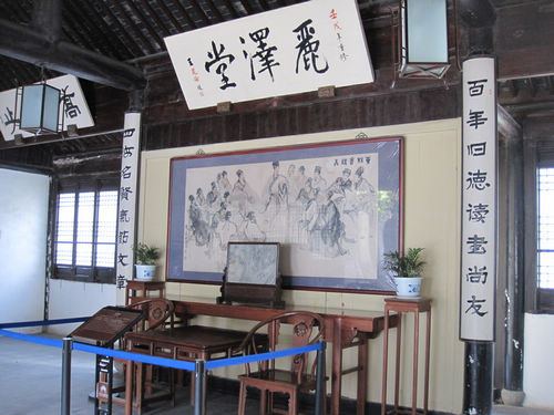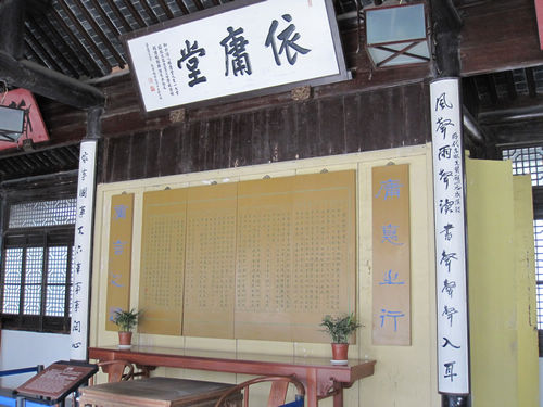 三进为“依庸唐”。孔孟之道讲求中庸,依庸,即依乎中庸之意。现堂上挂有两联:其一为“庸德之行,庸言之谨”;其二是明代东林党领袖顾宪成撰联、1982年著名作家廖沫沙书写的名句“风声雨声读书声声声入耳”、“家事国事天下事事事关心”。